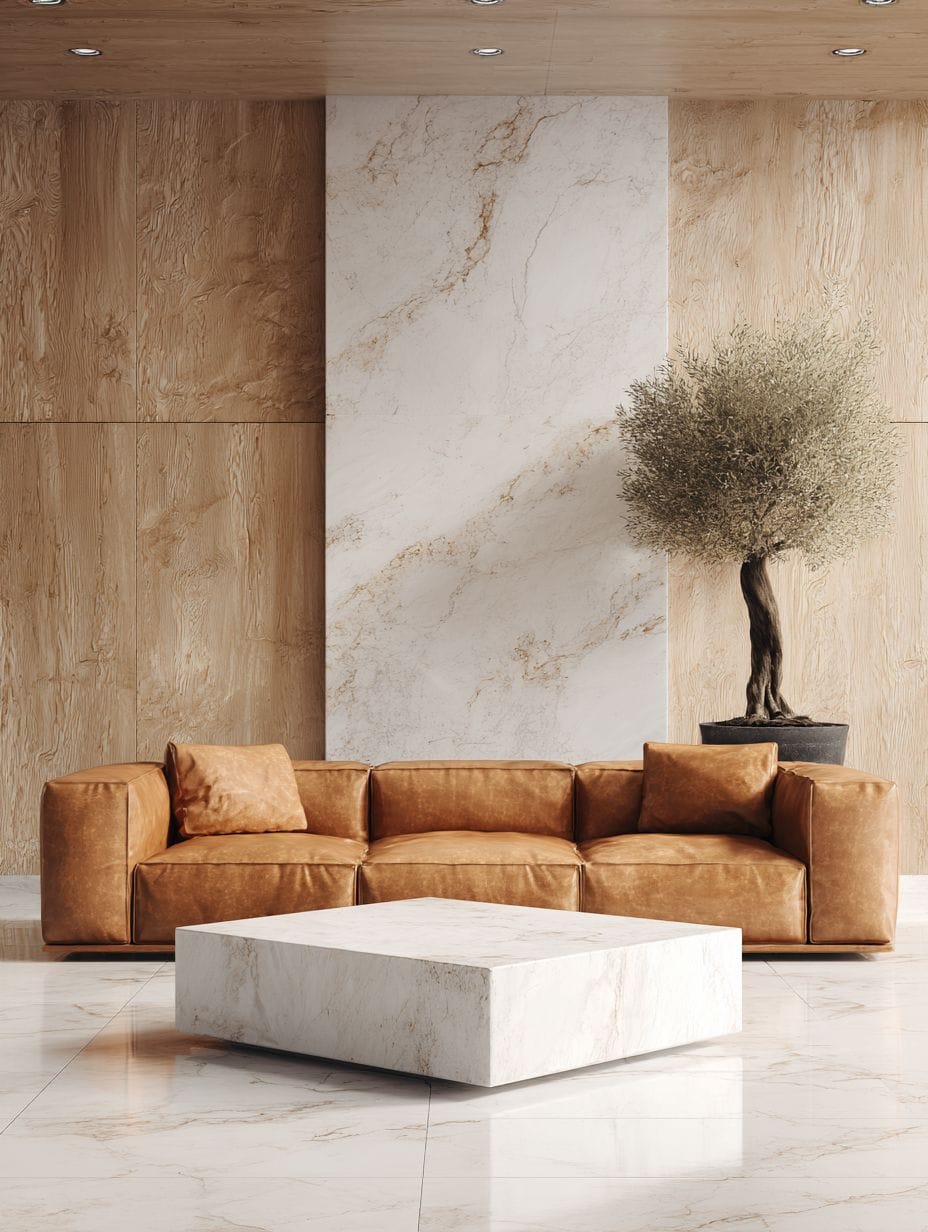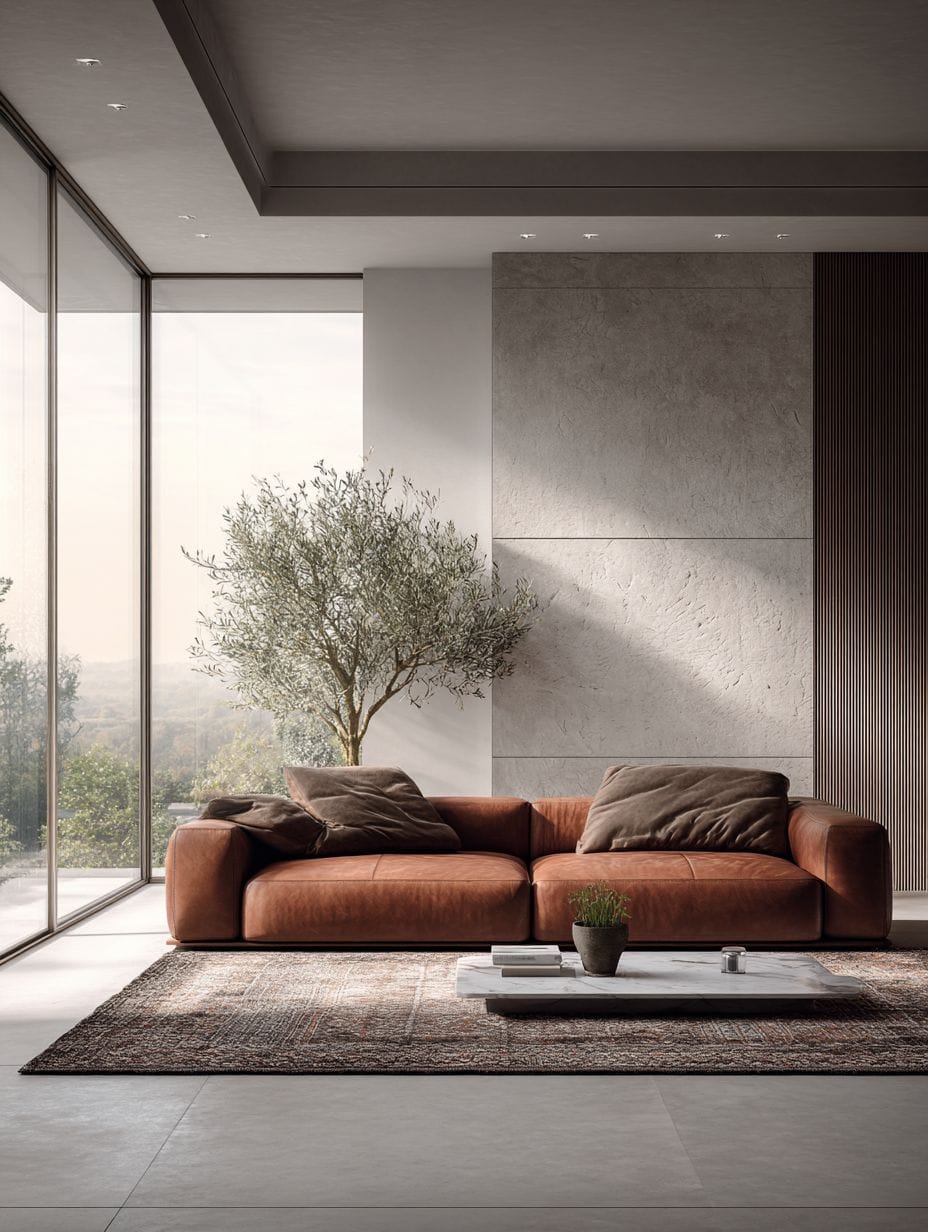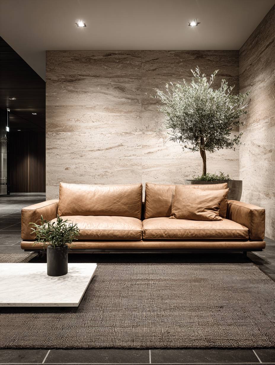 • Contrast rough and refined textures such as pairing concrete with leather to create visual and tactile interest