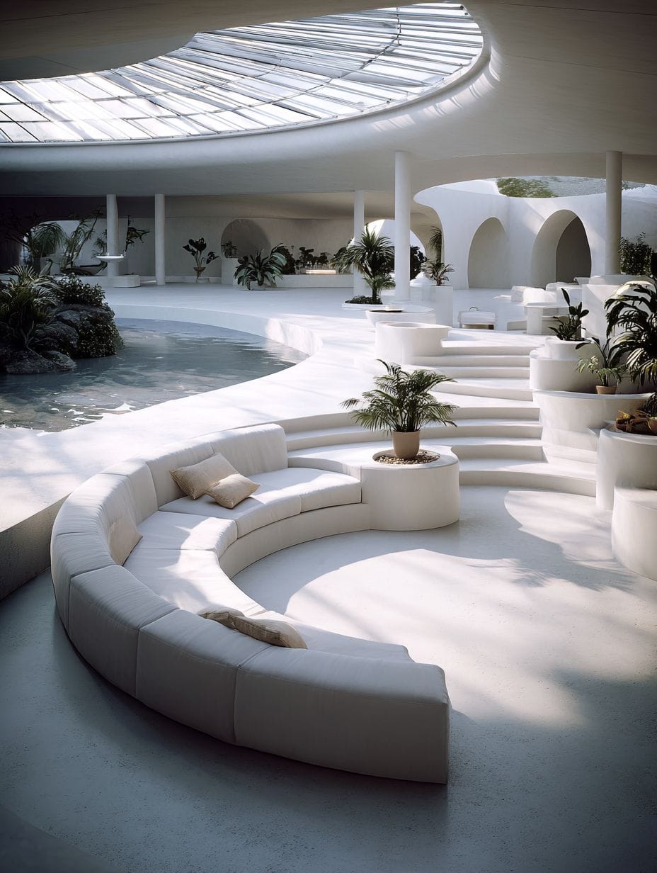 • Incorporate architectural seating solutions like conversation pits that provide function through built-in elements