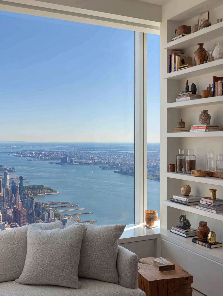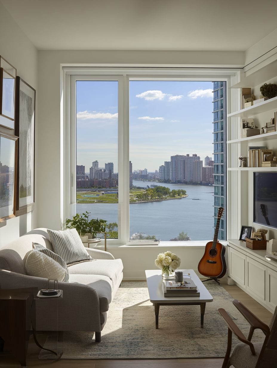 • Select low-profile furniture that doesn’t obstruct natural light flow or overwhelm the vertical space in the room