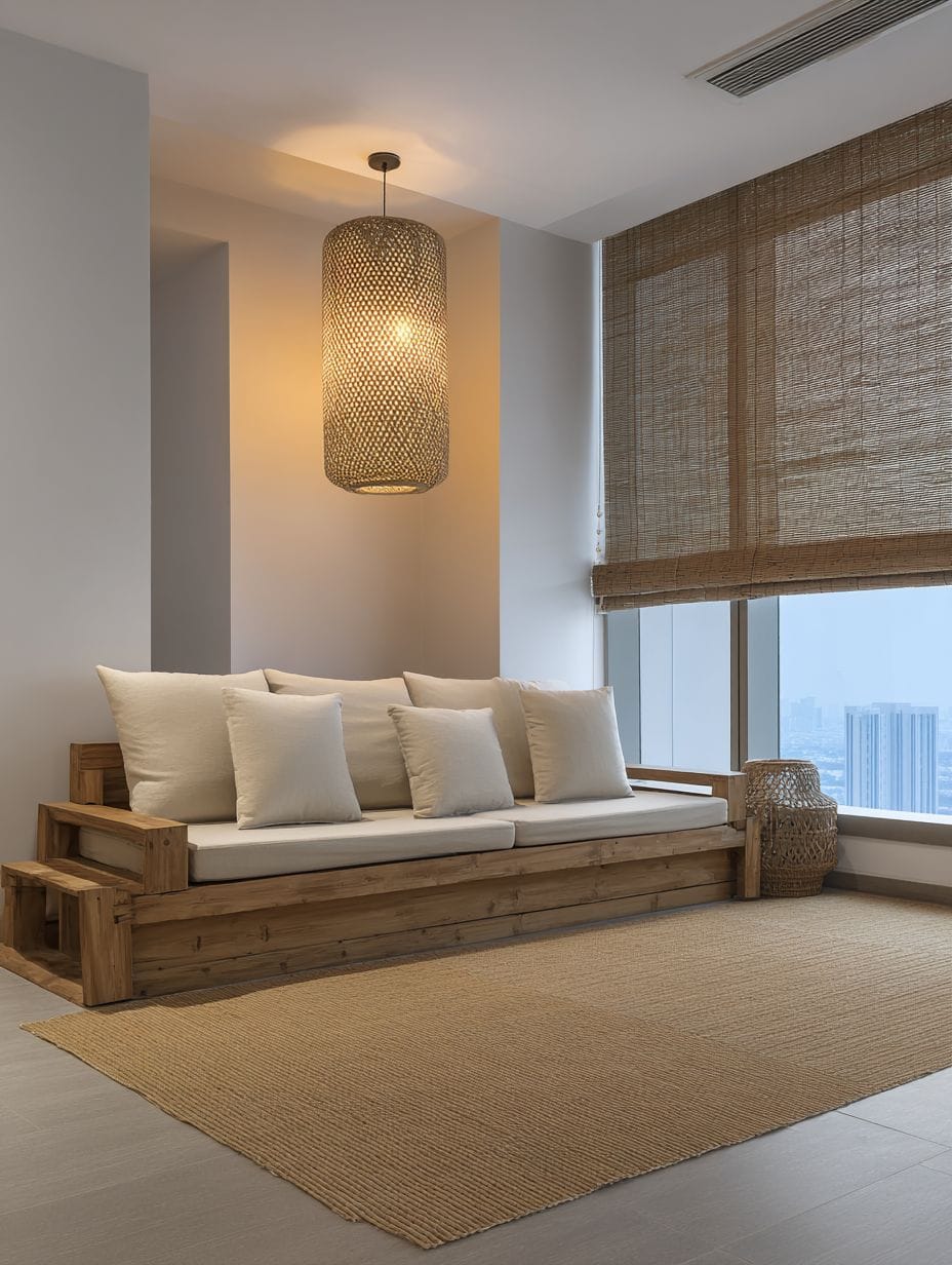 • Add minimal cushions in natural fabrics for comfort without introducing pattern or visual complexity