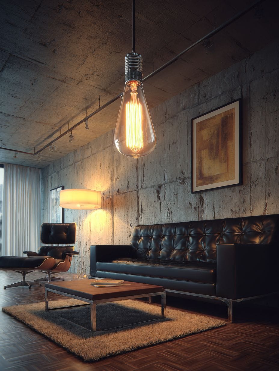 • Use Edison bulbs or exposed lighting to embrace the industrial aesthetic’s celebration of electrical elements