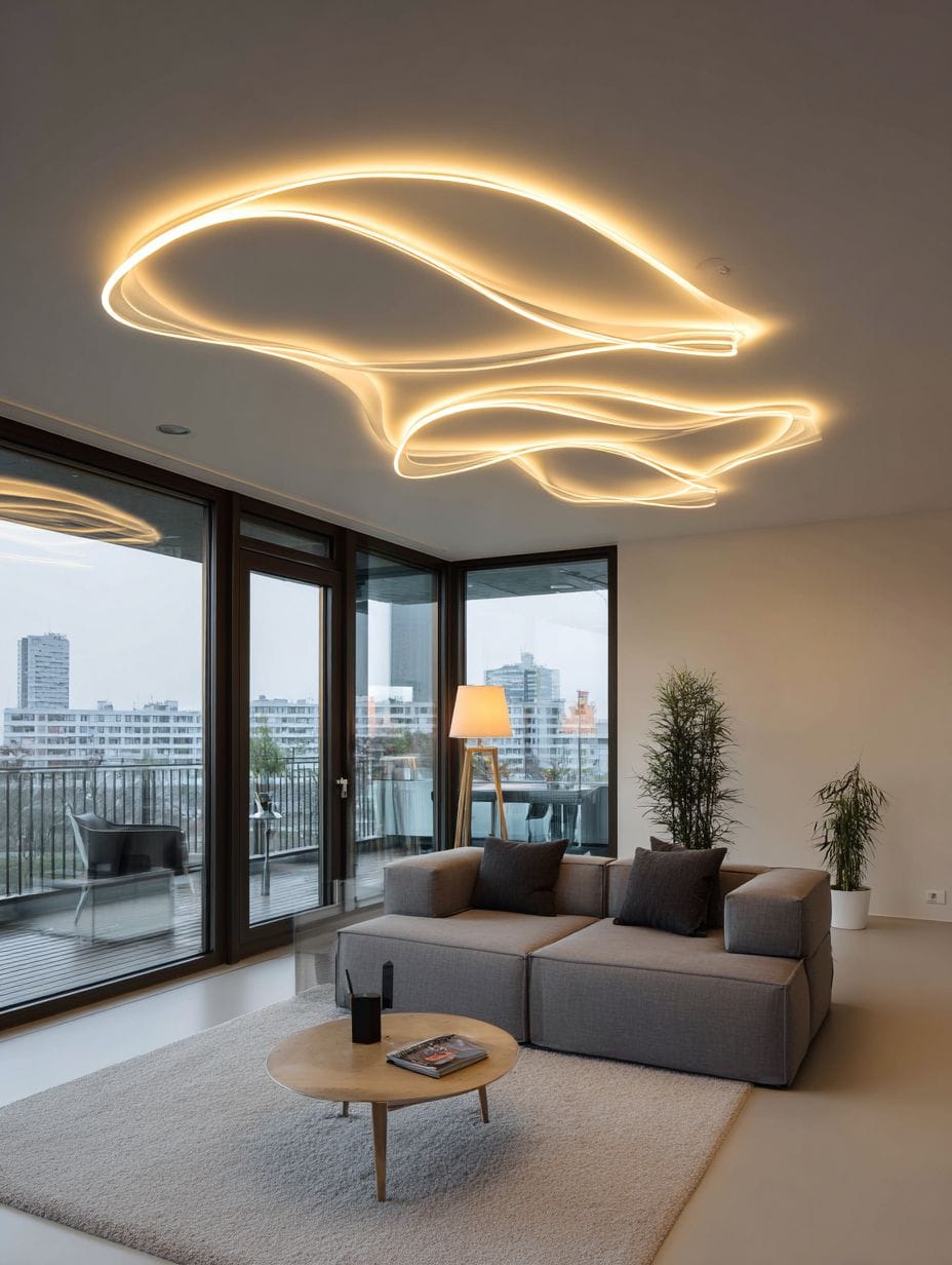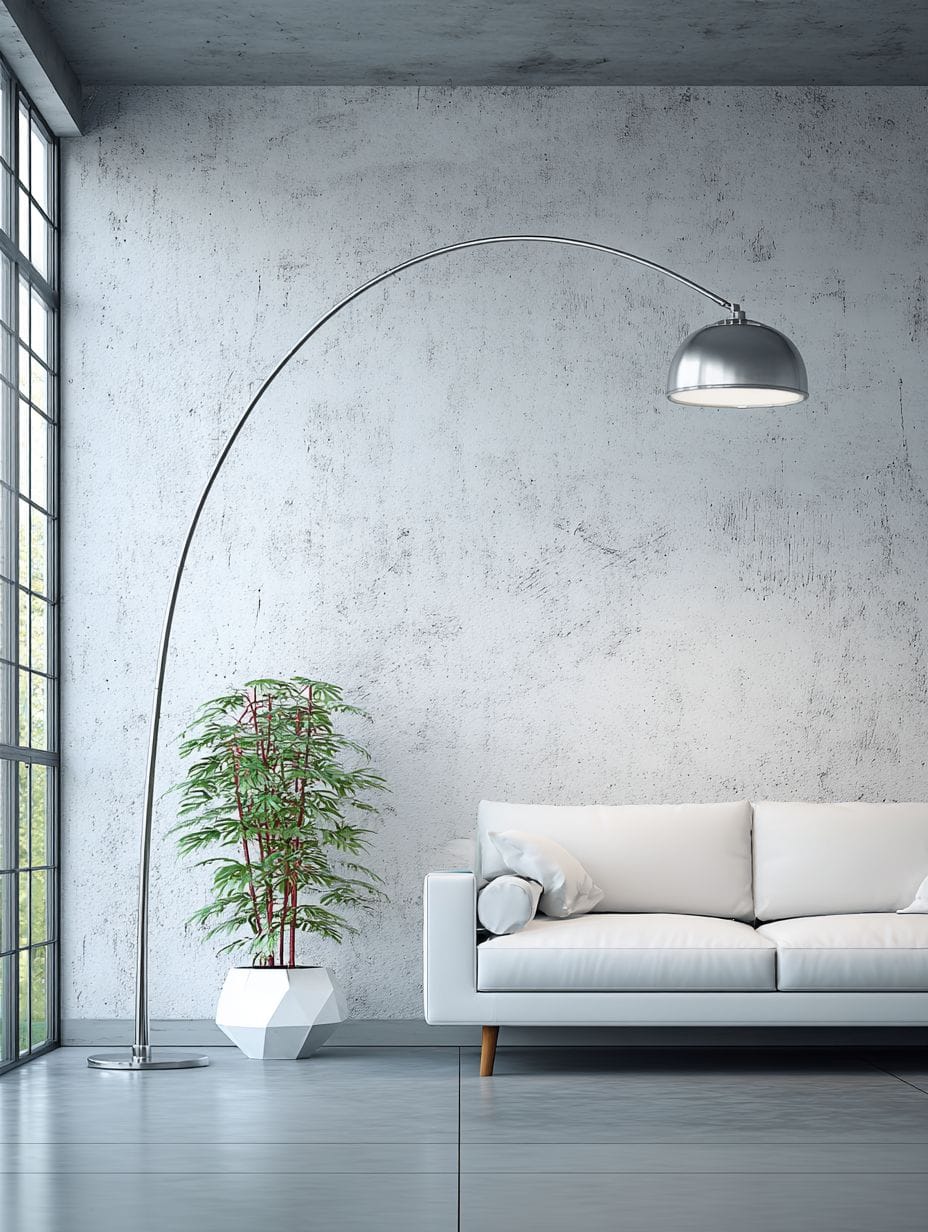• Prioritize architectural lighting solutions like arc floor lamps that provide functional lighting without requiring ceiling installations