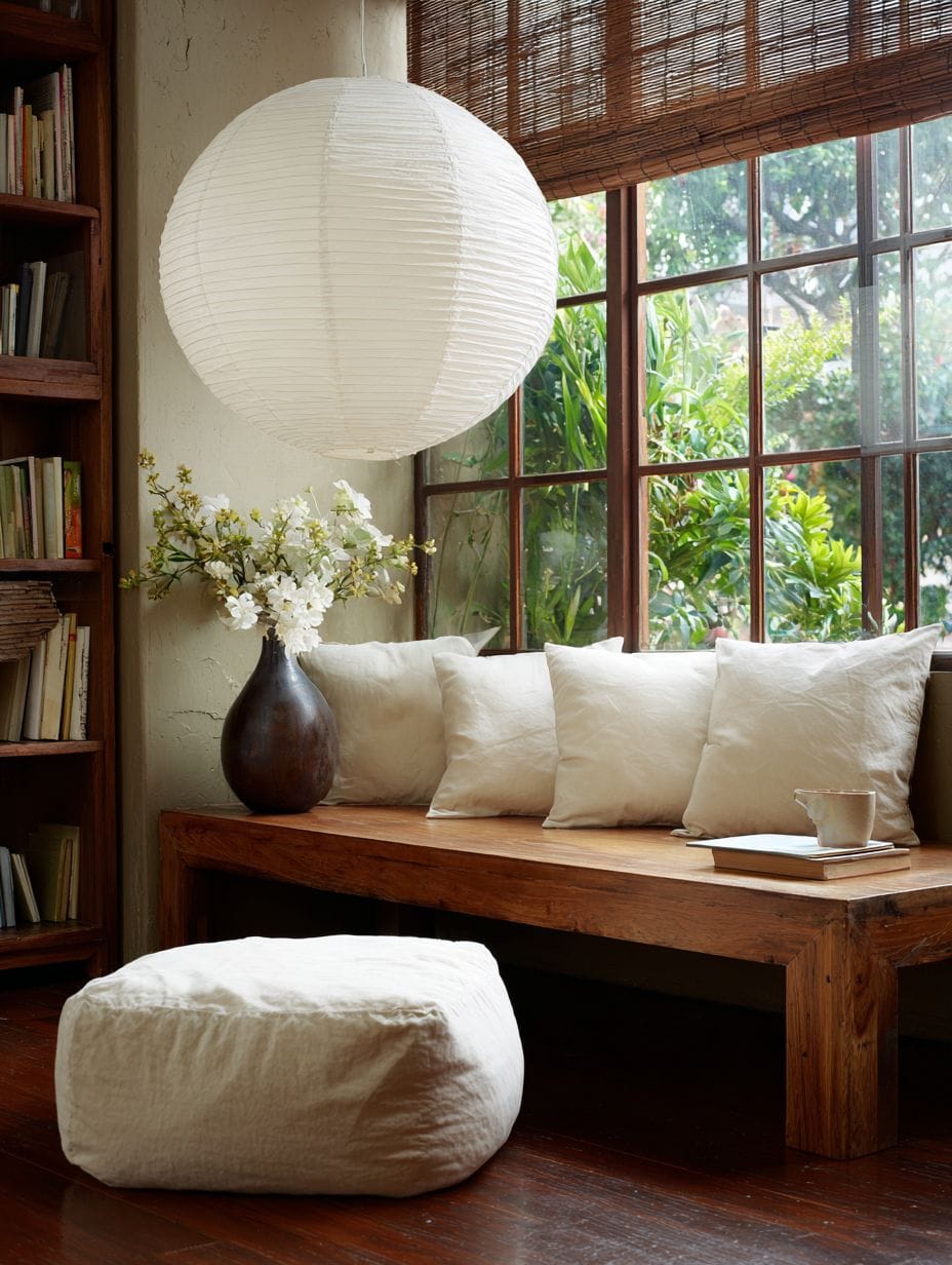 • Use sheer curtains to filter natural light while maintaining the soft, diffused quality essential to serene spaces