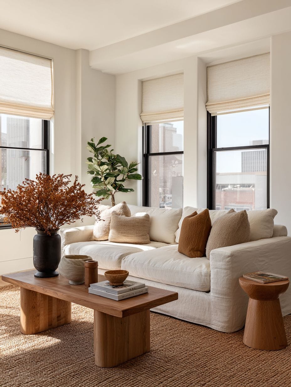 • Incorporate natural materials like linen, jute, and wood that add warmth through inherent texture and tone