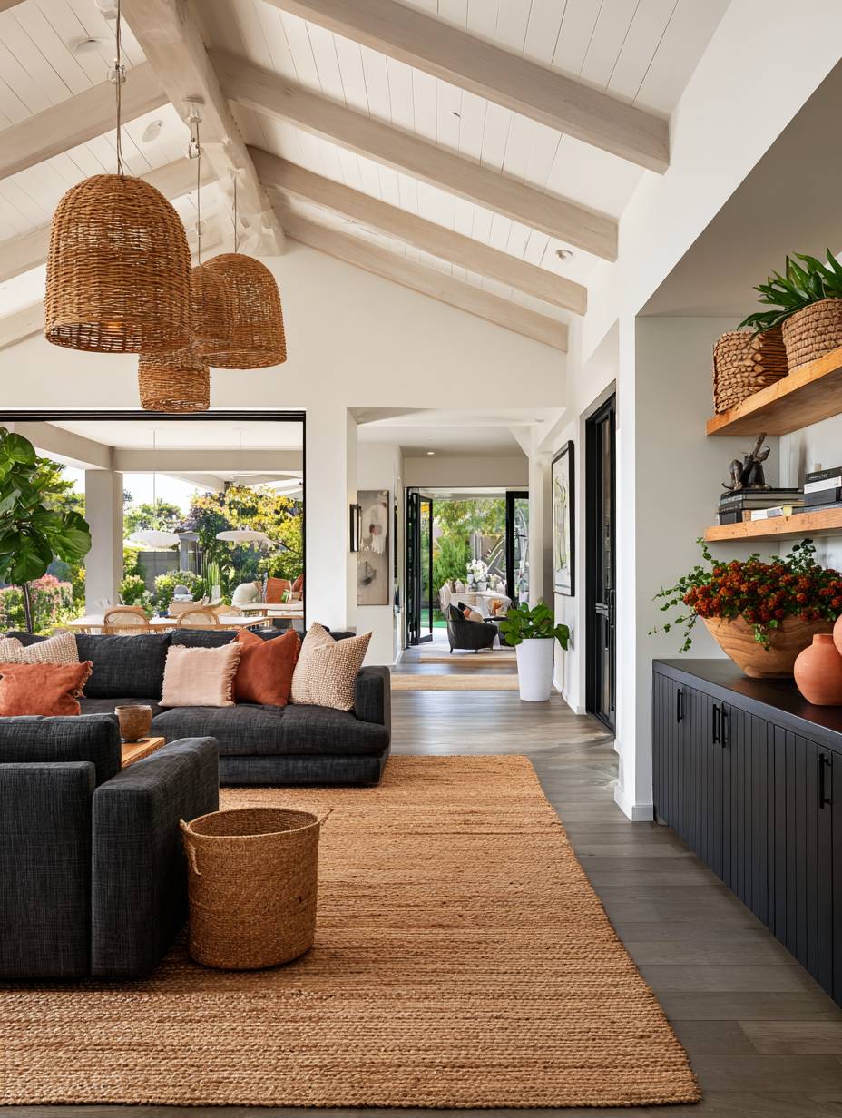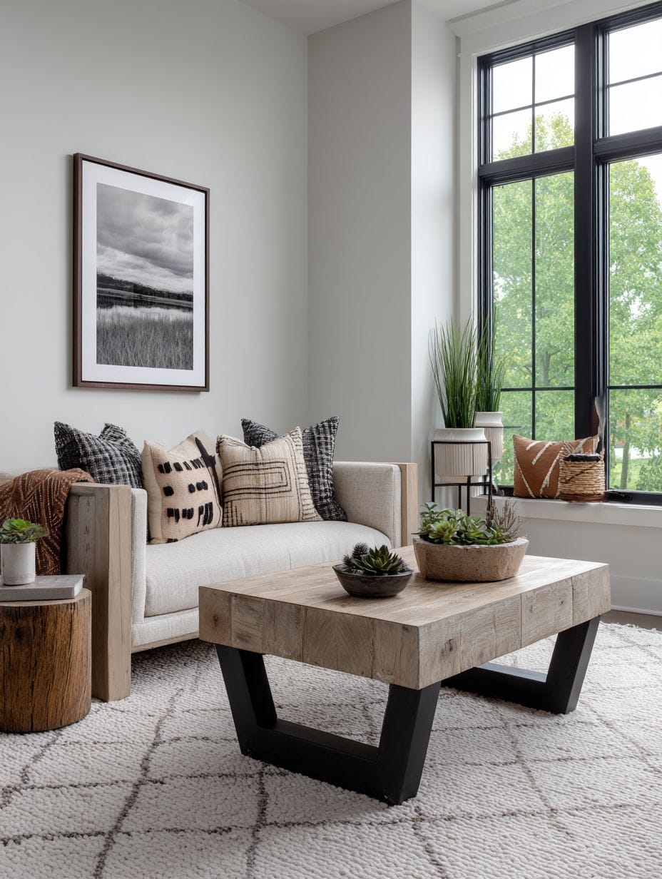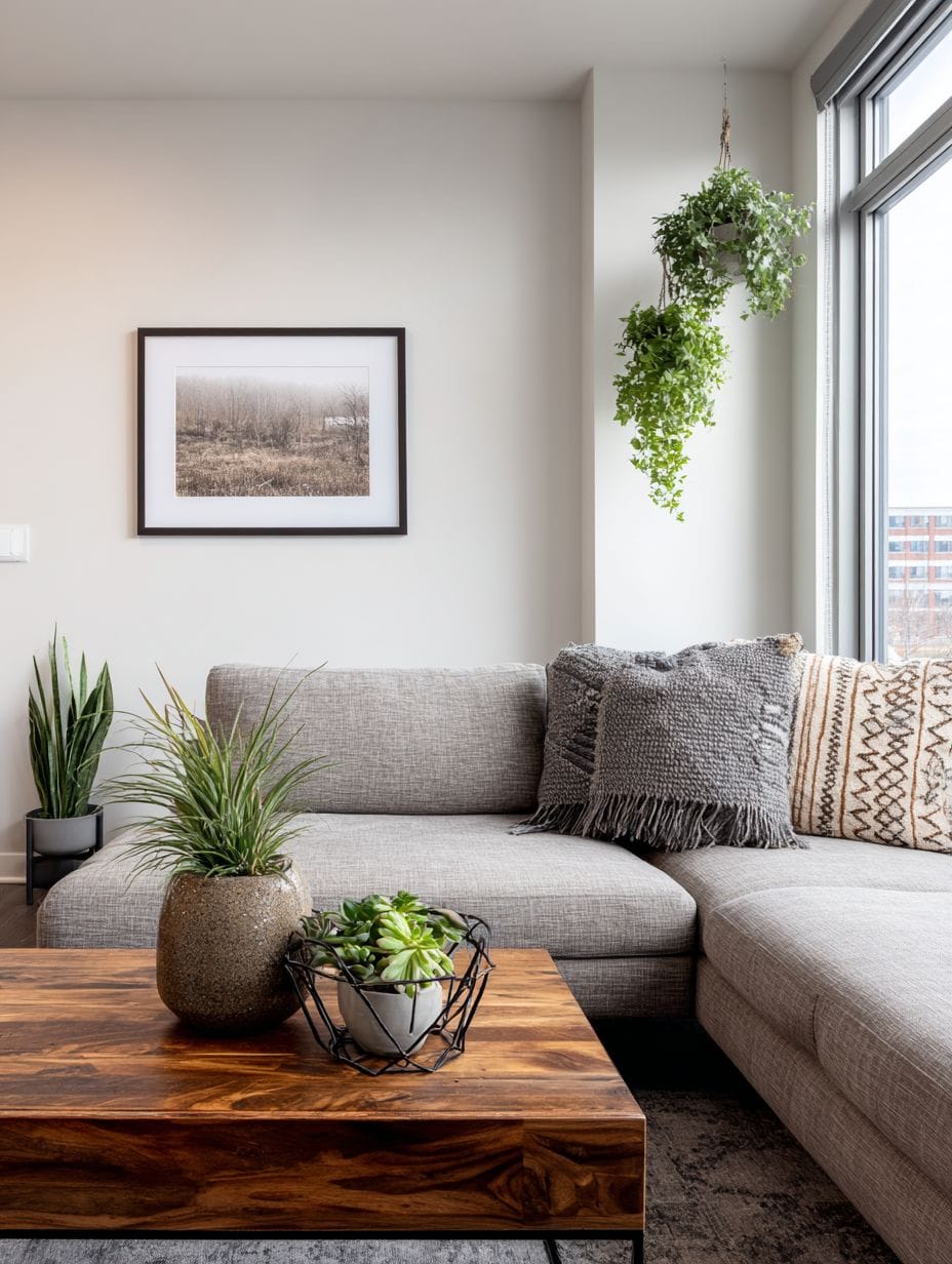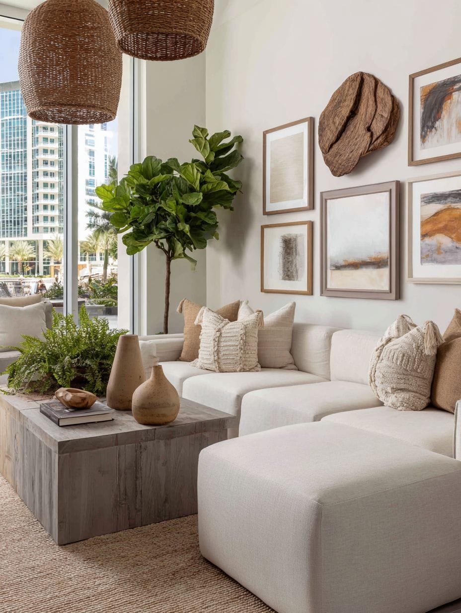 - Incorporate natural materials through rugs, coffee tables, and plant displays to bridge modern and bohemian aesthetics.