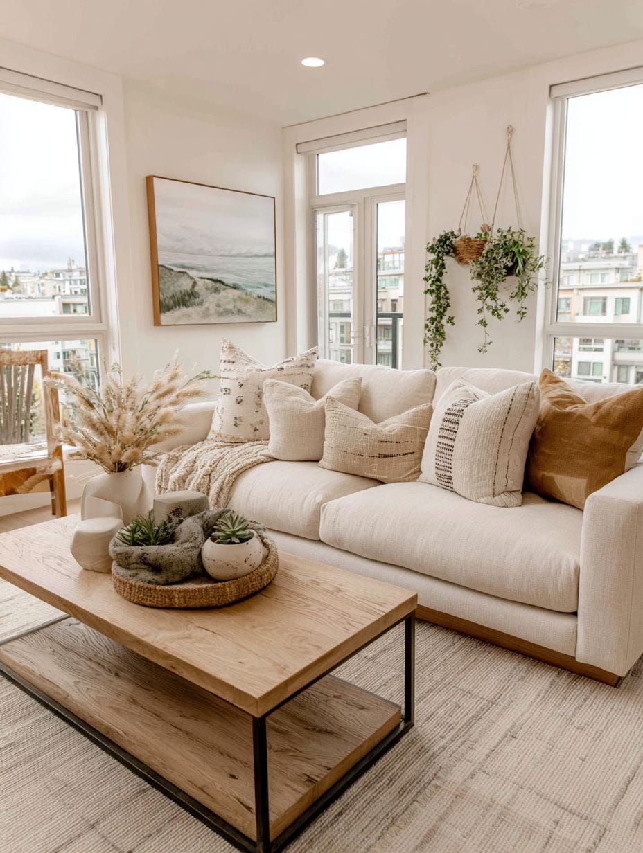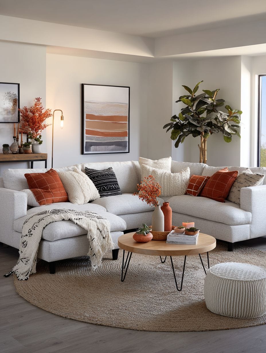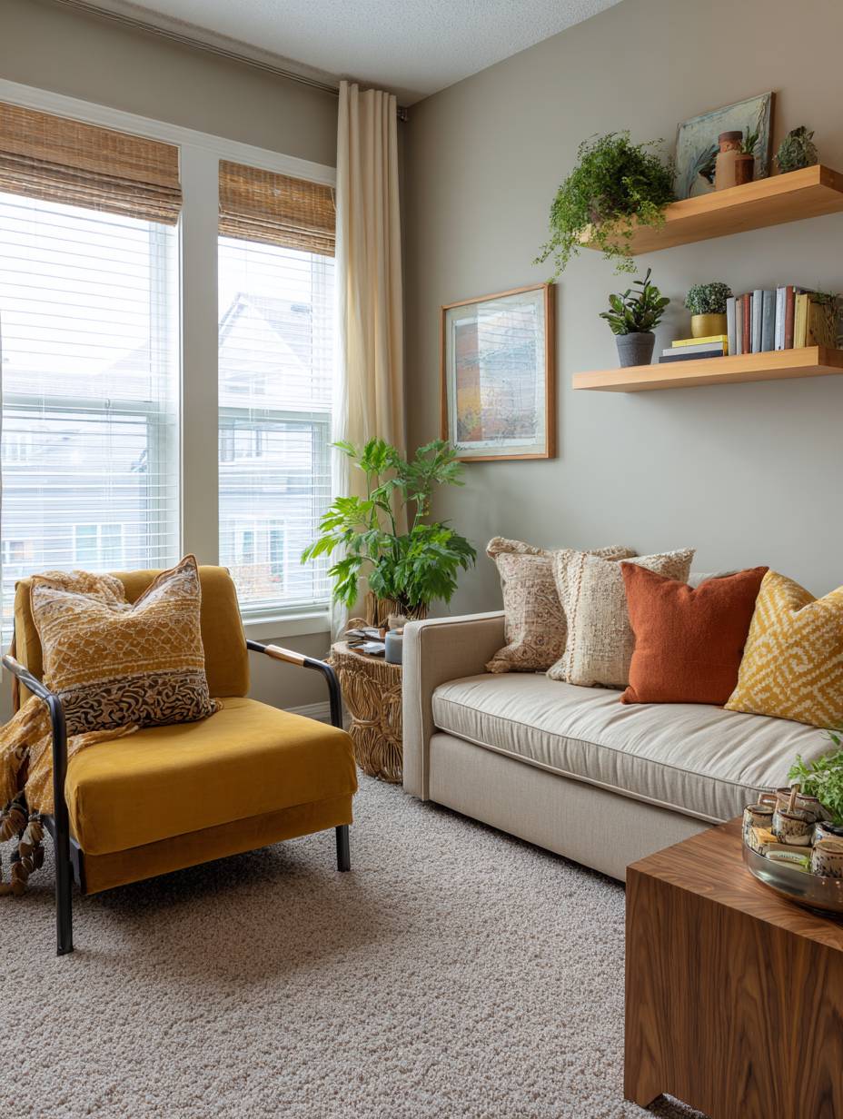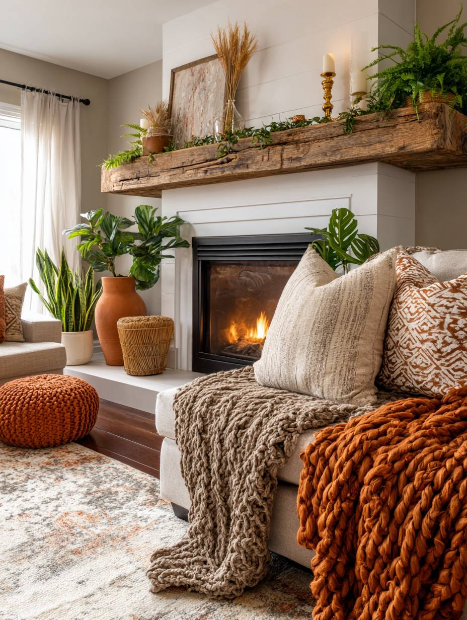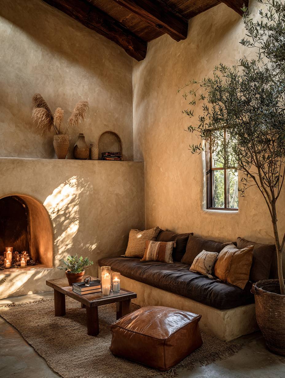 - Layer textures through pillows and throws in warm, earthy tones that complement rather than compete with each other.