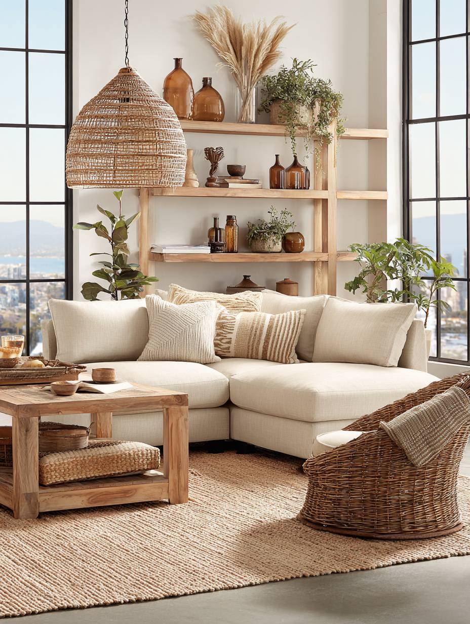 What makes these boho living room concepts particularly valuable is their emphasis on natural materials and sustainable design choices. Throughout these designs, you’ll notice the consistent use of organic materials like jute rugs, rattan furniture, reclaimed wood, linen upholstery, and handwoven textiles. These material choices aren’t merely aesthetic—they represent a design philosophy that values sustainability, craftsmanship, and connection to nature. In an era of fast furniture and disposable decor, modern boho style celebrates pieces that age beautifully, develop character over time, and can be cherished for years rather than replaced seasonally. This makes modern bohemian living rooms not just beautiful but also environmentally conscious and financially sensible.
